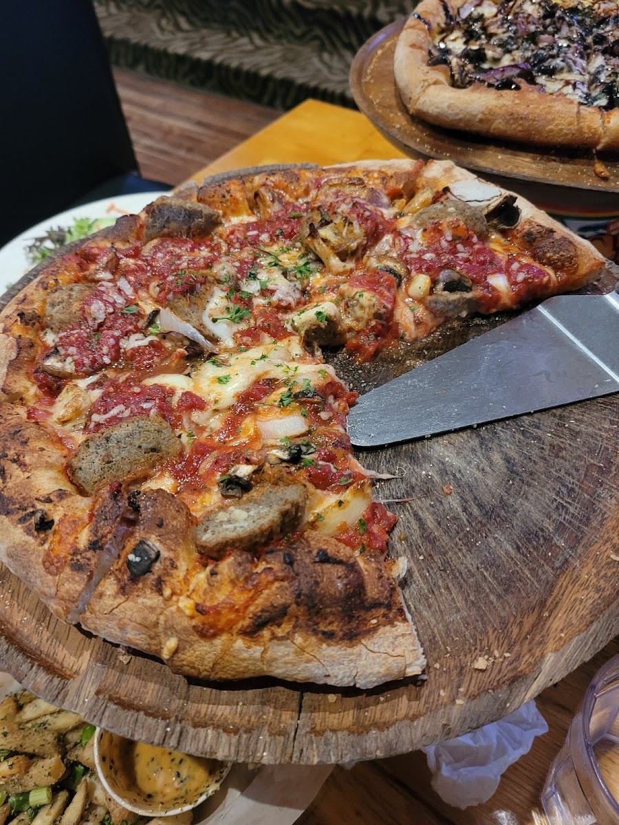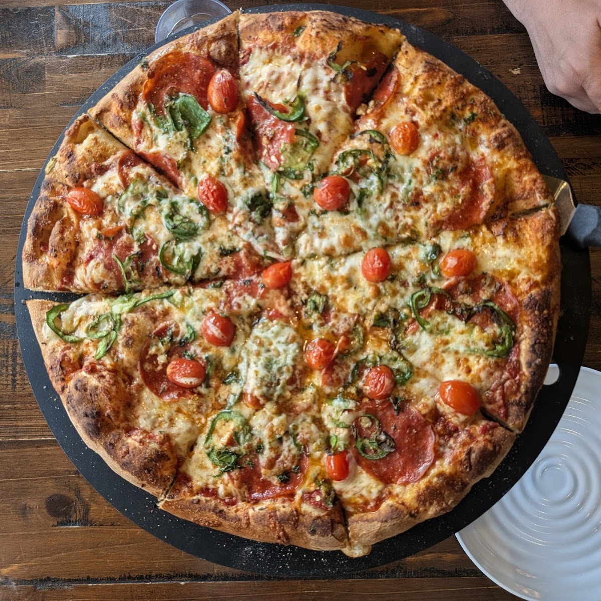 Today, we stopped and had lunch. It was a great atmosphere, and the side patio was awesome. Our server fit right into the vibe. She was great and very friendly. All that said, the Food was the was the star of the show. We got the garlic bread and the " Bouty Call" Pizza. It was amazing and lived up to its description. I will definitely stop again and have no doubt it will be note worthy again. Thank you for the experience.