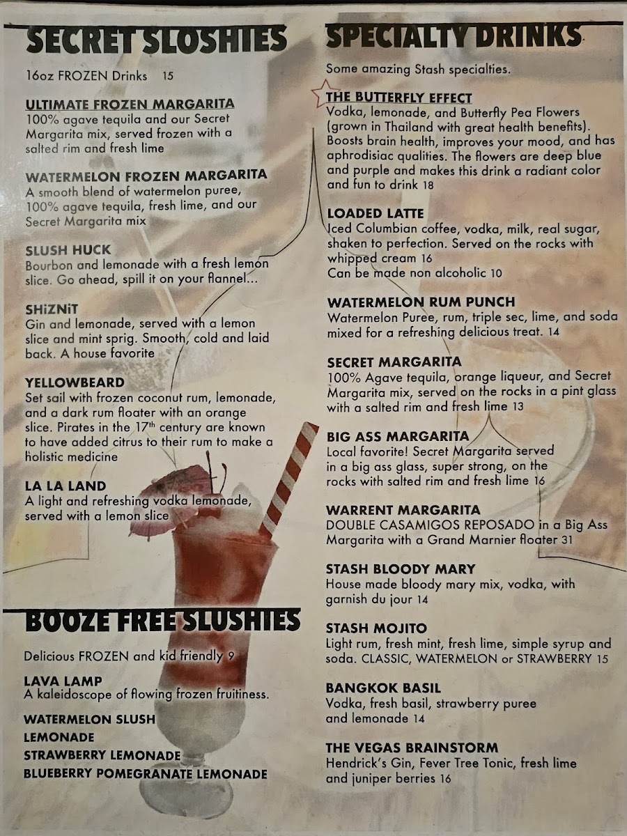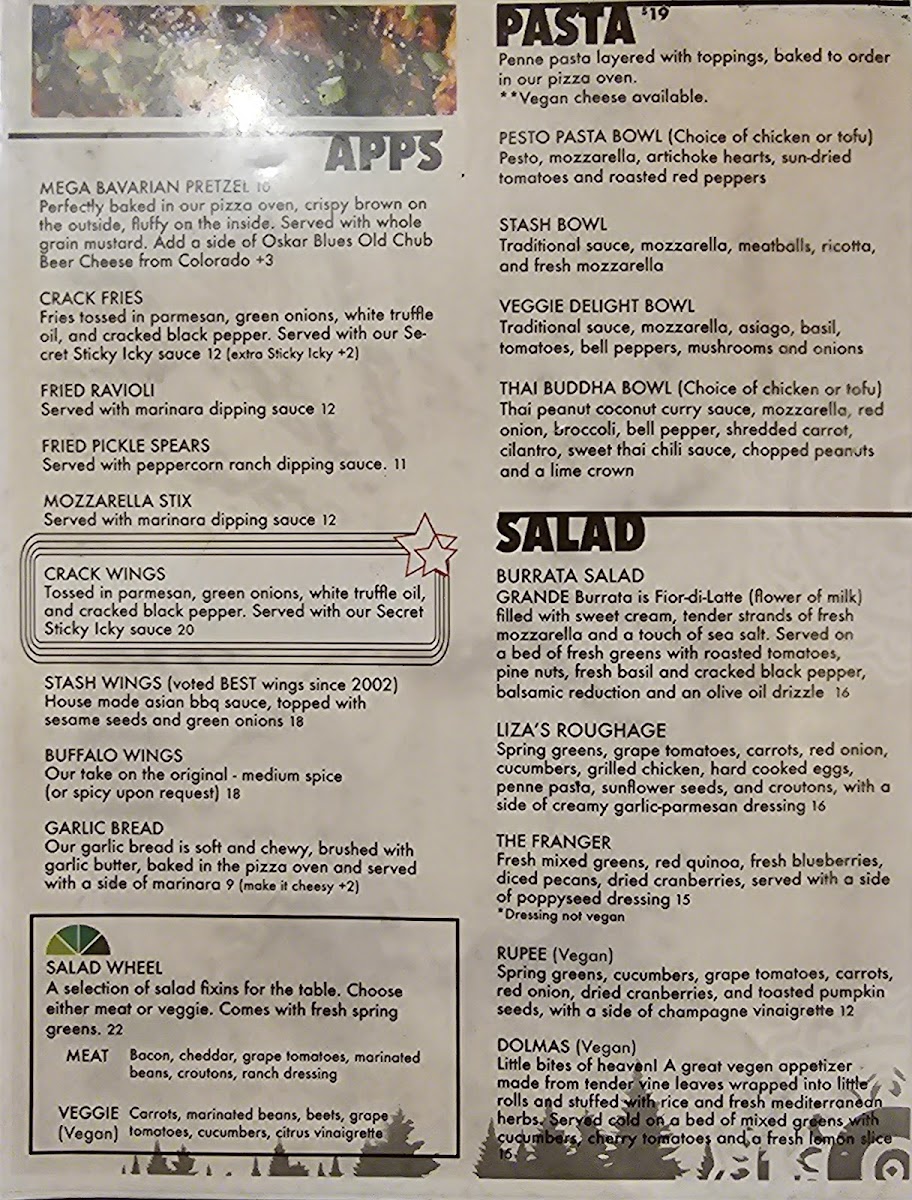 The Secret Stash offers a menu that balances casual comfort with thoughtful variety, inviting guests to enjoy familiar favorites and creative takes in a relaxed setting. Whether you're stopping by for a coffee, settling in for a pizza dinner, or grabbing some wings and a drink at the bar, the menu matches the friendly, eclectic vibe of the place.